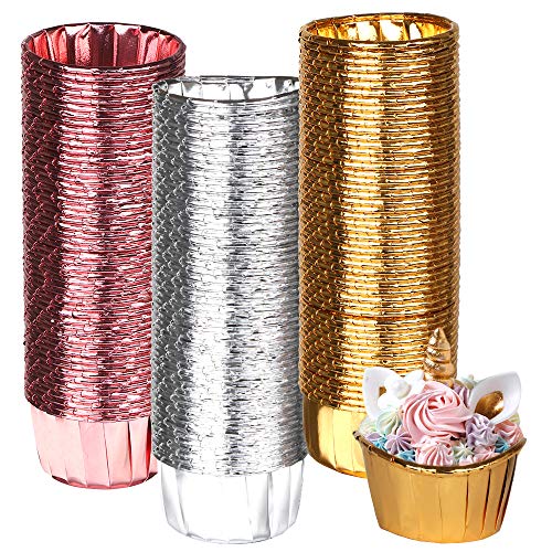 Lokipa - 150 moldes de aluminio para magdalenas, 3.5 onzas, moldes para magdalenas, moldes para magdalenas, magdalenas, moldes de papel de aluminio desechables para fiestas, bodas, cumpleaños