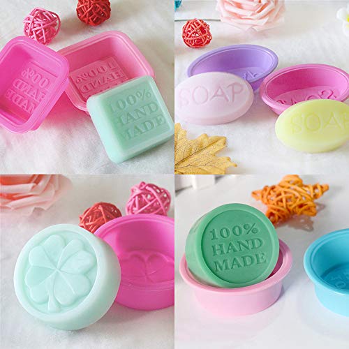 RETON 28 Piezas Moldes de Jabón Ovalados Redondos Cuadrados: Impresos con"100% HECHO a MANO","JABÓN" y Molde de Silicona Hecho a Mano de Lucky Clover Pattern/Baking