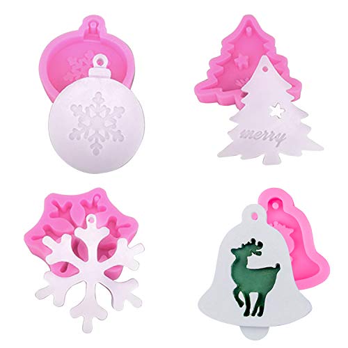 - Moldes de hornear de Navidad - 5pcs Navidad silicona Fondant Molds Set tienen diferentes tamaños incluyen moldes de campana de Navidad, moldes de árbol de Navidad, moho de copo de nieve y tarjetas de Navidad moldes.surtido tamaño, pequeño, pequeño, mediano, grande.