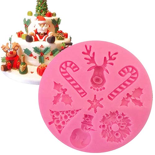 Qpout Navidad Moldes de Hornear (5pcs), Pastel de Silicona Fondant Hornear Moldes Chocolate Caramelo Herramienta de Hornear para Cumpleaños de Navidad Fiesta Pastel Decoración Cupcake Topper