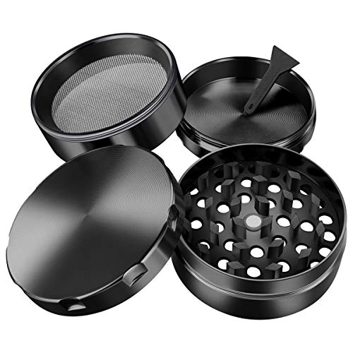 iLC Grinder Especias, Tabaco, Hierbas Grinder Metálico Con Polen Colector 2" - Hecho de duradero Aleación de zinc- 4 Piezas - Dientes en forma de diamante (Negro)