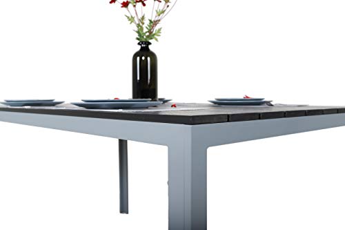 Chicreat - Mesa de comedor de aluminio y madera sintética para jardín, Color Negro/Plateado , 150 x 90 cm