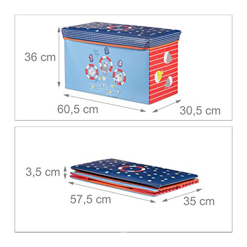 Relaxdays Baúl para Juguetes, Taburete Infantil, Plegable, para niños y niñas, Bajo el mar, 50L, Azul