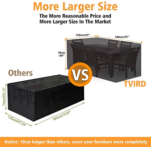 - √【Tamaño Grande】El tamaño de la funda muebles rectangular : 190×120×74 cm. Es adecuado para la mayoría de las formas, como juego de comedor, mesa y sillas de 8 asientos, muebles de exterior, mesa de picnic, sofás, bancos , mesa de café, etc. También se puede utilizar para interiores o exteriores como balcón, jardín, patio. ❤ Por favor mida el tamaño de los muebles antes de comprar.