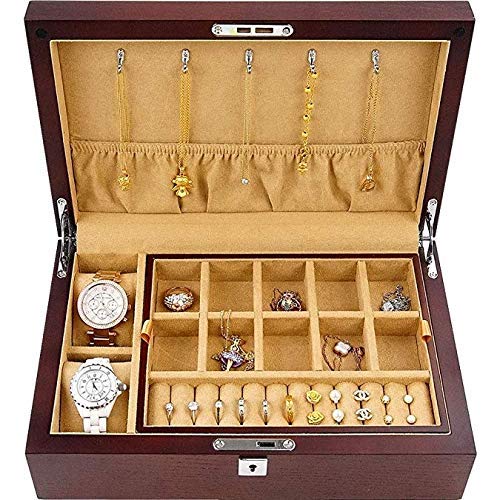 KUANDARGG Joyero de Madera de Doble Capa Almacenamiento de Relojes Chapa de Madera Maciza Colección de joyería Simple Almacenamiento de Bloqueo Joyero, B