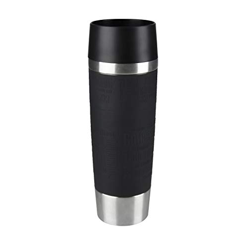 Emsa Travel Mug Grande Taza Termo, 0.5 L, Acero Inoxidable/Silicona, Plateado/Negro