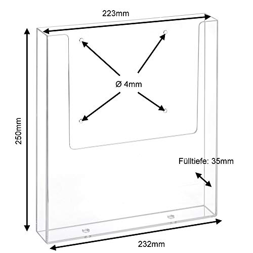Zeigis® - Soporte de pared para folletos (DIN A4, con agujeros de taladro, soporte para folletos, montaje en pared), transparente