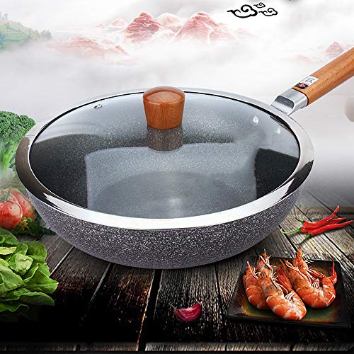 Maifan Stone Wok - Sartén doméstica - Sartén Natural/sin Humos/Antiadherente - Estufa de Gas/Cocina de inducción General -30cm