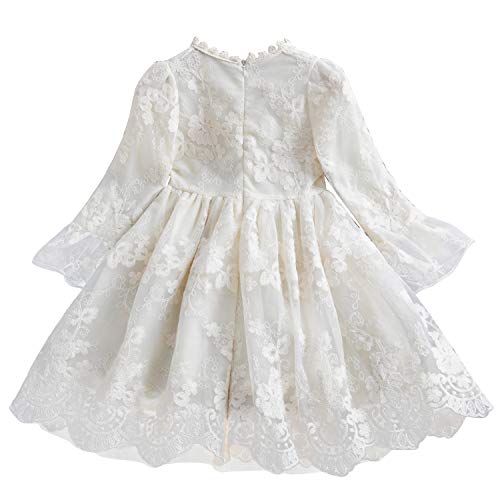 TTYAOVO Vestido de Fiesta de Princesa de Manga Larga de Encaje para Niñas Talla(100) 2-3 Años 10 Blanco