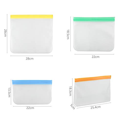 - ★ CUATRO TAMAñOS: Las bolsas para sándwich reutilizables están disponibles en cuatro tamaños diferentes con cuatro colores para el almacenamiento en el hogar. Perfecto para organizar o almacenar refrigerios, almuerzos, verduras, frutas, comida para bebés, maquillaje, artículos de viaje, papelería y mucho más.