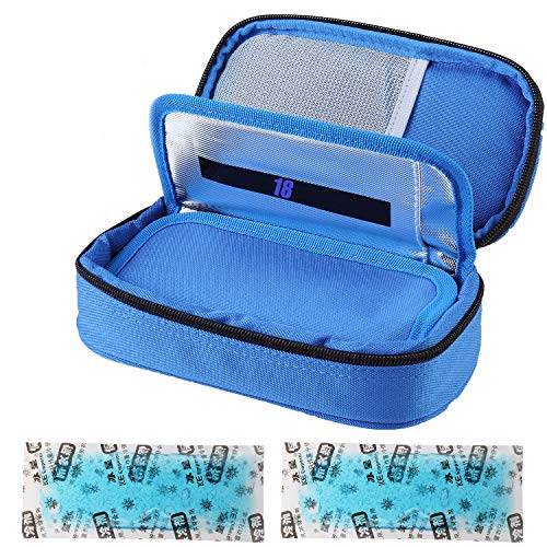 Insuline - Nevera isotérmica para transportar medicamentos para diabéticos con 2 paquetes de hielo, color azul
