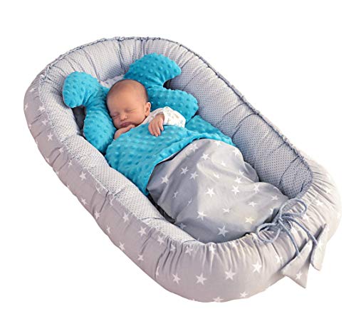 Juego de 5 piezas de nido para abrazar con nido de bebé de 90 x 50 cm extraíble inserto manta plana almohada mariposa almohada Medi Socios para bebés 100% algodón poddle dormir pod