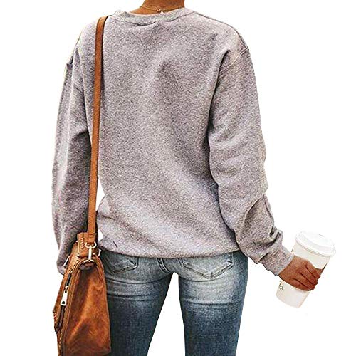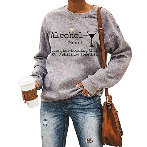 Sudadera con Estampado de Letras de Alcohol Patrón de Copa de Vino Mujeres Niñas Otoño Invierno Algodón Color sólido Gris Cuello Redondo Manga Larga Jersey de Lana Suéter Blusa Tops