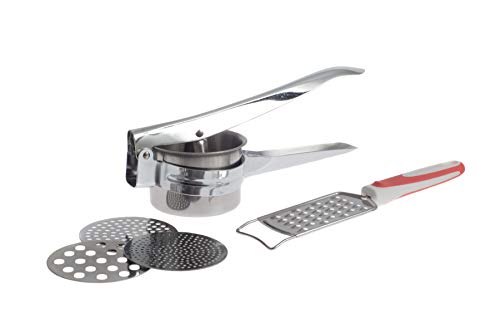 Zujara Trituradora de Patatas Ricer con Rallador en Acero Inoxidable y 3 Discos Intercambiables, Prensa para Frutas, Procesador de Alimentos para Bebés, para Puré de Vegetales, Ñoquis y Spaetzle
