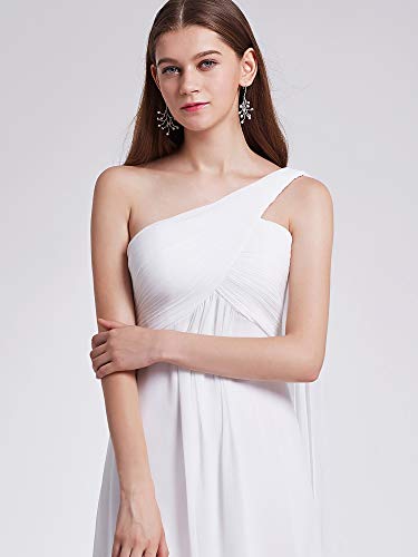 Ever-Pretty Vestido de Gala Gasa Un Hombro Corte Imperio Plisado sin Mangas para Mujer Blanco 48