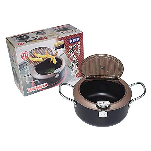 yingmu Freidora Profunda, Utensilios De Cocina Tempura De Acero Inoxidable, Tapa, Freidora Antiadherente con Termómetro, Freidora Japonesa, Olla Doméstica para Cocinar En La Cocina, 8 Pulgadas