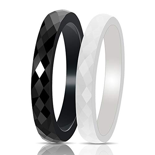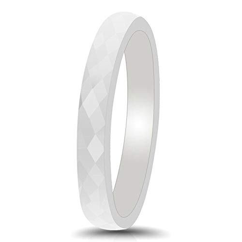 PAURO Joyería Alto Pulido Clásico Diseño Compromiso Boda Banda Anillo Mujer Cerámico Blanco Tamaño 19