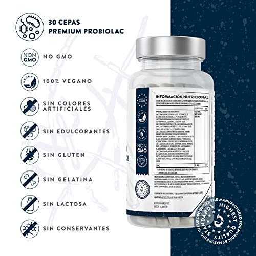 - ➤ MEZCLA DE ESPECTRO COMPLETO: Nuestra misión en AAVALABS era crear el complejo de bacterias más completo en el mercado hoy en día, y con Premium Probiolac, hemos hecho exactamente esto. Junto con los prebióticos, cada cápsula contiene 30 cepas diferentes de bacterias buenas que tienen cada una su función única en el intestino. Y con la enorme cantidad de 120 UFC por dosis diaria, nuestra nueva mezcla es 2 veces más potente que nuestra formulación original.
