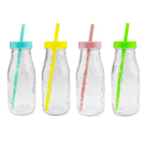 - Juego de 6 vasos de bebidas con tapas pastel y pajitas a rayas.