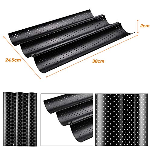 - La bandeja para hornear baguette francesa de tres ranuras tiene un diseño de molde ondulado para evitar que la baguette se pegue después de la fermentación.