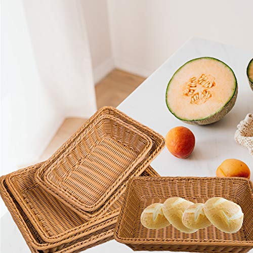 Qiundar Cesta de Frutas de Ratán, 2Pcs Cestas Mimbre Rectangular Canasta Pan,para Restaurante Cocina Pantalla Decoración Cestos(30 * 20 * 7CM)