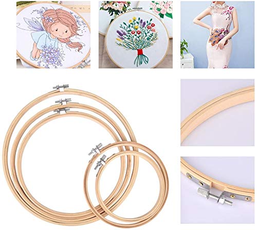 AFDEAL Kit de Inicio de Bordado,Kit de Herramienta de Punto de Cruz,5 Piezas Aros de Bambú, 100 Hilos de Color, 12 Por 18 Pulgadas Set de 14 Agujas y Reserva Clásica Aida y Agujas