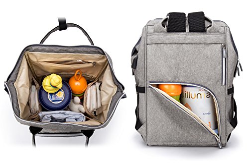 Pañal Bolso Mochila, Gran Capacidad Mochila de Pañales Bolso de Viaje, Impermeable Bolsa de Pañales con Aislado Bolsillos para Cuidado de Bebé y Mamá-Gris