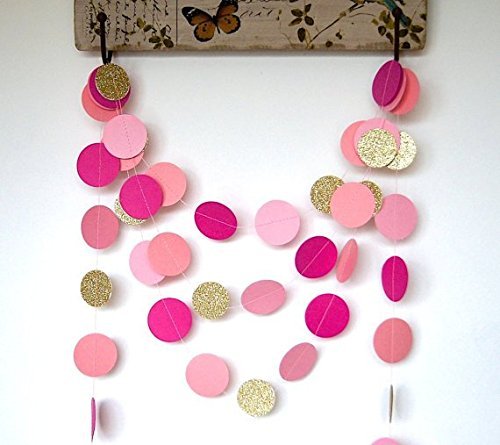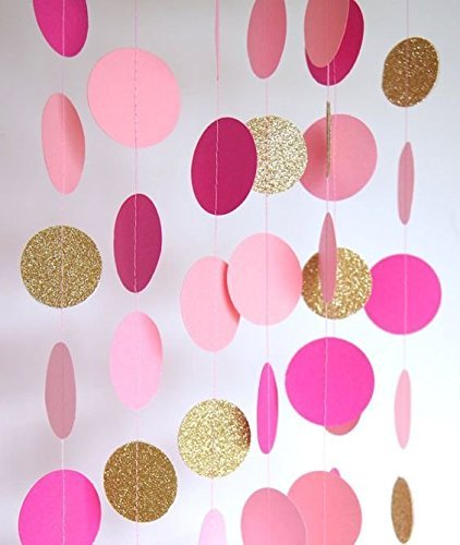 2 Conjuntos de 6,5 pies de puntos largos de círculo Papel Garland Decoración colgante Fucsia Rosa y oro Baby Shower Decoración de la fiesta de cumpleaños