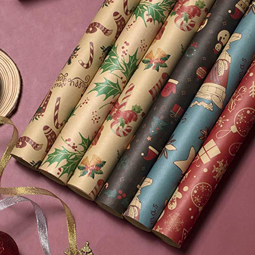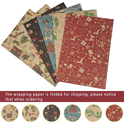 - Diseño Papel Kraft: Tema navideño clásico, Ideal para regalo de Navidad. hay 6 diseños diferentes patrones, que pueden satisfacer sus diversas necesidades de embalaje.Ideal para envolver regalos y regalos.