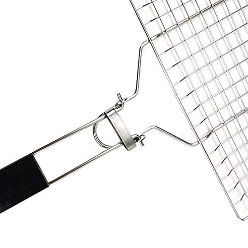 Yuehuam Canasta de Parrilla para Barbacoa Canasta Portátil para Asar Utensilios de Cocina para Asar de Acero Inoxidable con Mango de Madera Extraíble Y Lisa para Filete de Pescado con