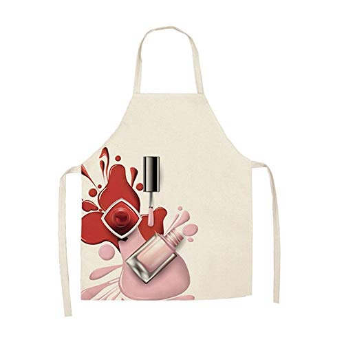 Henanyimeixiang Delantal Flor de Lino Esmalte de uñas temático Imprimir Delantal de la Cocina Dinner Party Unisex Cocinar Babero Divertido Limpio Delantal (Color : 4, Size : 47x38cm)