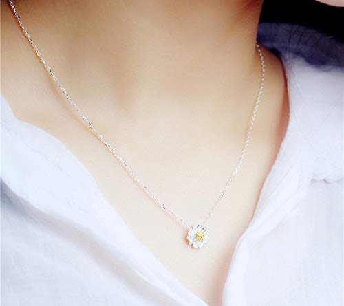DGFGCS Collar de Plata para Mujer Plata De Ley 925 Elegante Minimalista Pequeñas Margaritas Sol Flor Crisantemo Collar Moda Pequeño Fresco