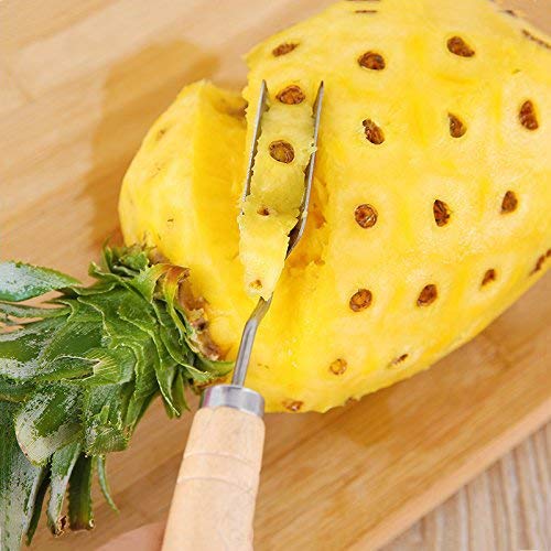 HIGHKAS Pelador de piña de Acero Inoxidable Herramienta para Quitar Ojos de piña en Forma de V Cortador de Corte Mango de Madera Cuchillo de piña Triangular Cocina Gadget para Cortar Frutas