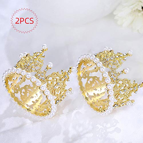 SACALA 2 piezas pequeñas de corona dorada decoración para tartas de boda, corona de perlas vintage King/Princesa para decoración de fiesta de cumpleaños