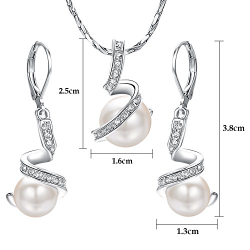 Yoursfs - Chapado en Oro Blanco Conjunto de Collar y Pendientes con Colgante de Bola de Cristal Perlas Artificiales para Mujer