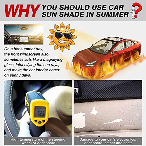 - Protégete a ti mismo y al coche: protector de pantalla de alta calidad y duradero para mantener la temperatura interior de tu coche, para que los asientos de tu vehículo se mantengan frescos y sin quemar las manos en el volante.