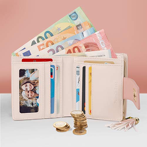 Pomelo Best Cartera Mujer RFID Bloqueo, Mujeres Monedero Pequeña con Bolsillo para Monedas y Piedras de Colores Colgante