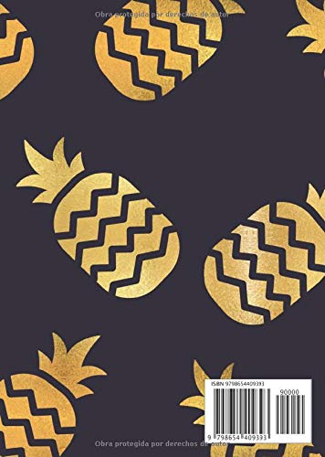 Agenda 2020-2021 A5: Agenda 2020/2021 18 meses: Organiza tu día - Planificador semanal - Semana Vista - Julio 2020 a Diciembre 2021 - Español - Diseño piña dorada