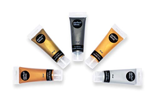 perfect ideaz Pinturas acrílicas Metalizadas (5 x 75 ml = 375 ml), 5 Pinturas Creativas Diferentes, Alta proporción de pigmentos de Colores, Pintura acrílica de Alta Cobertura y de Secado rápido