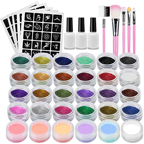 - ✨Amplia gama de aplicaciones: Puede usar el kit de tatuajes de brillo en su cuerpo en cualquier lugar, cara, brazos, espalda, también en uñas, artes y manualidades, álbumes de recortes, decoración de bricolaje, agregue sus propios diseños especiales de destellos. Los usos son infinitos.