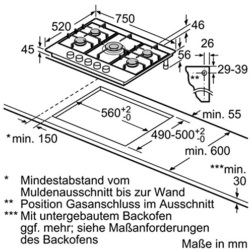 Siemens eo6b6pb10 integrado Gas Negro hobs