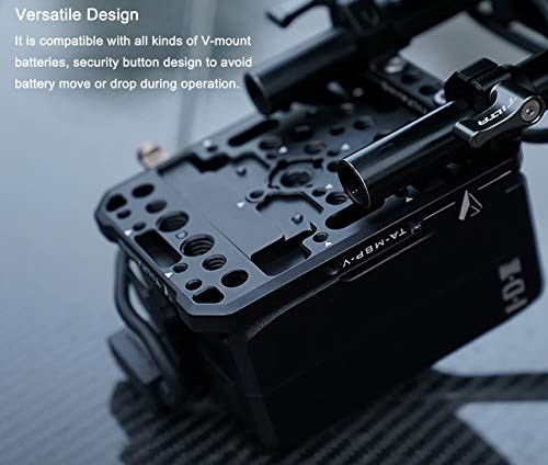 - Esta pequeña placa le permite montar una placa de batería con montura en V de varias maneras para permitirle tener una cámara lo más ergonómica posible y poder alimentar su cámara y / o accesorios con los puertos de alimentación de la batería. )