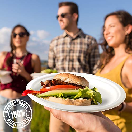 - Alta calidad - Hechos con fibra de caña de azúcar y bagazo de buena calidad - Nuestros platos no tienen forro de plástico o cera. Muy duraderos, se pueden usar para alimentos calientes, aunque los alimentos calientes pueden hacer que la placa transpire y se forme condensación en la parte inferior. También es ideal para el uso diario, simplemente enjuague y deseche, ahorrando horas de tiempo.