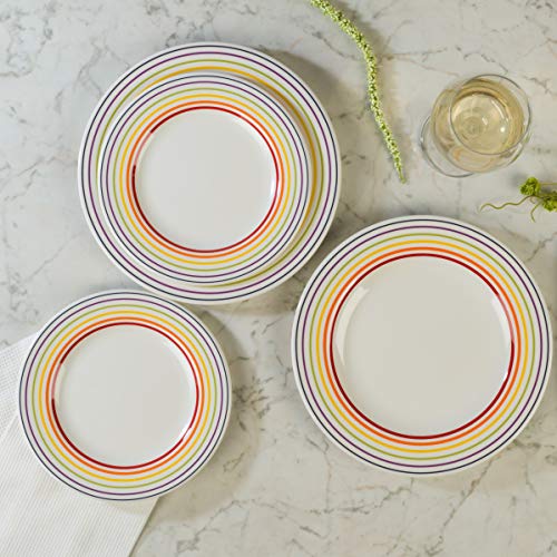 - Incluye 6 de cada tipo: plato de 26,5 cm, plato de postre de 19 cm, bol de 14 x 7 cm