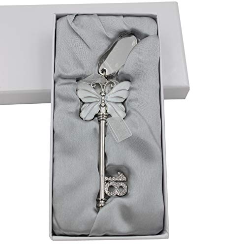 Sophia Collection - Llave chapada en plata con esmalte blanco, diseño de mariposa, regalo de 18 cumpleaños