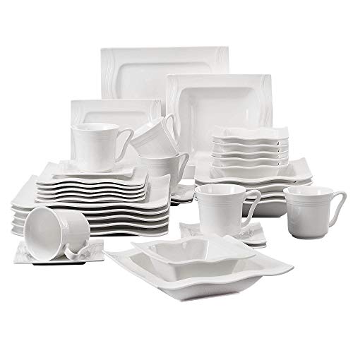 MALACASA, Serie Mario Juego de Vajillas 36 piezas Servicio Combi Porcelana en el diseño clásico con 6 tazones, 6 Tazas de café, 6 Platillos, 6 Platos de Postre, 6 Platillos y 6 Plato planos