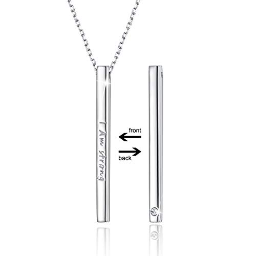 SIMPLGIRL Plata de Ley Collar Colgante de Barra Vertical, YO Soy Fuerte Joyería Minimalista de Inspiración para Mujeres Niñas 45 cm + 5 cm
