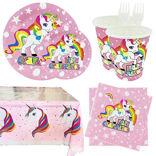 - 4.Esta vajilla desechable de fiestas de cumpleaños temáticas es excelente para todos los fanáticos de unicornios. Impresiona y cautiva a tus invitados, familia y amigos