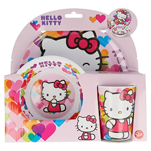 STOR SET MELAMINA SIN ORLA 3 PCS. (PLATO, CUENCO Y VASO) HELLO KITTY HEARTS