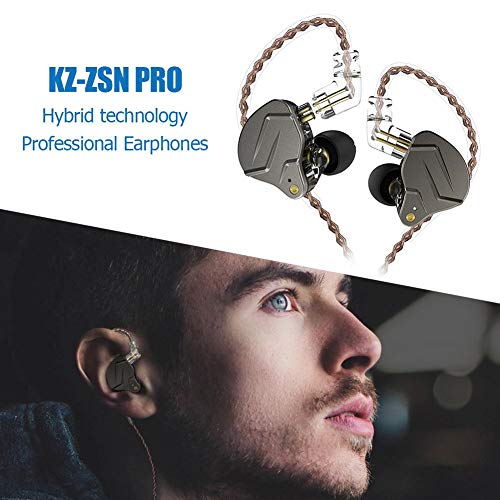 Domybest - Auriculares de metal KZ ZSN Pro con cable 1BA + 1DD híbrido, HiFi bajo, auriculares in-ear Sans Microphone gris